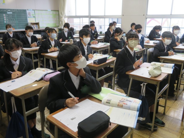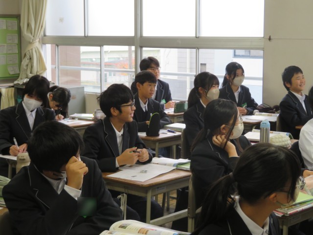 1年生の英語の授業のようすです。本文の読み取りをしていました。どんな助けが必要か、自分の身近な生活を思い浮かべながら英文を読み取ることができましたね。