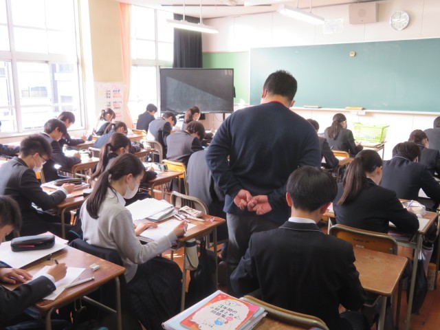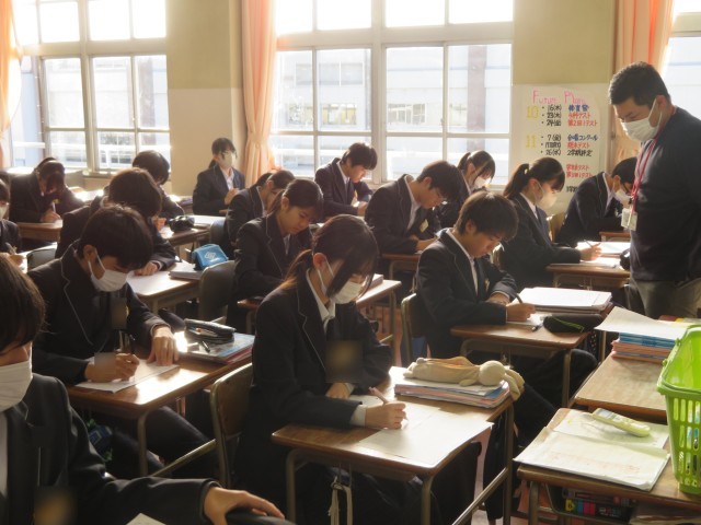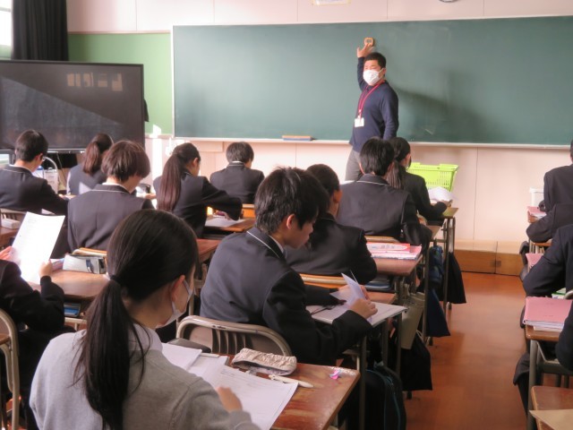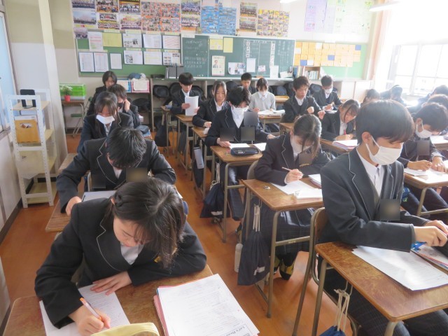 3年生の英語の授業のようすです。仮定法を復習するためのプリントに挑戦していました。「I wish+仮定法過去」について問題をたくさん解き、自信を深めることができましたね。