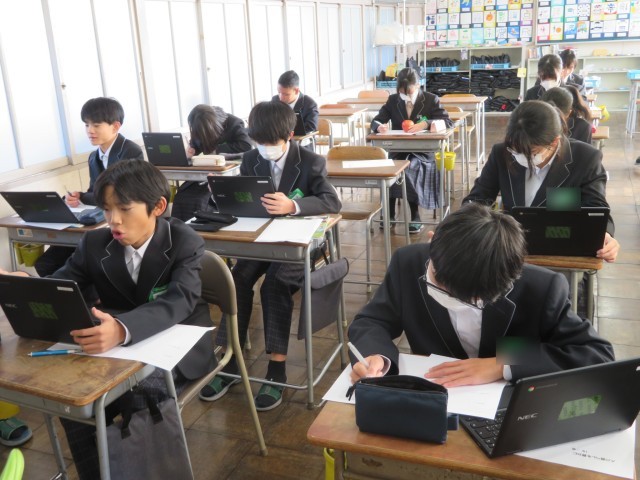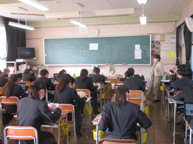 1年生の美術の授業のようすです。「そのものらしさを形に」というテーマで粘土作品づくりに取り組んでいます。今日は「モチーフをよく観察して、テーマを決めよう」というめあてで学習を進めていました。