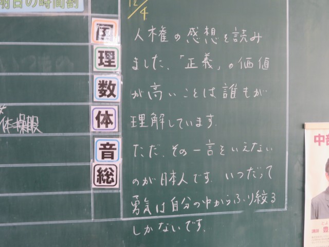 12月4日(木) 自分の中からふりしぼる勇気【2年黒板メッセージ】