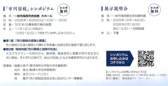 市川房枝さんの特別展示やシンポジウムの開催について【12/4より掲載】