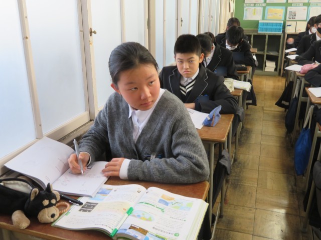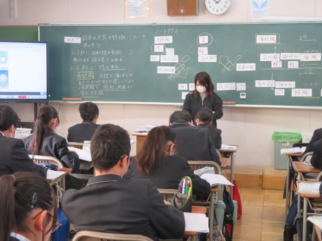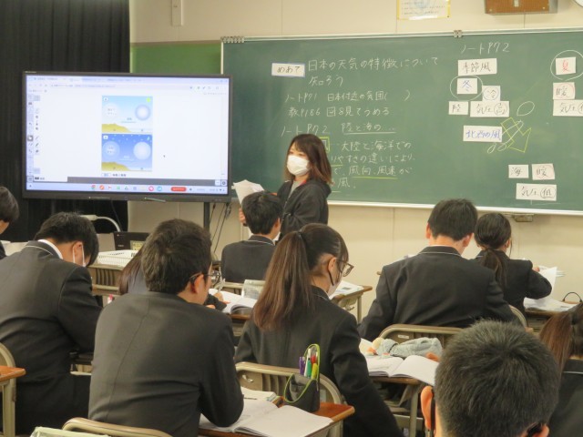 2年生の理科の授業のようすです。「日本の天気の特徴について知ろう」というめあてで学習を進めていました。天気の特徴と理由について考えることができましたね。