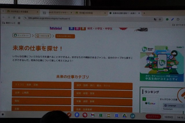 初回は行事の目的や、どんな講座が開かれるのかの説明、その業種の調べ学習を行いました。