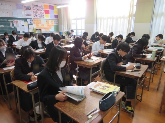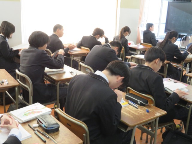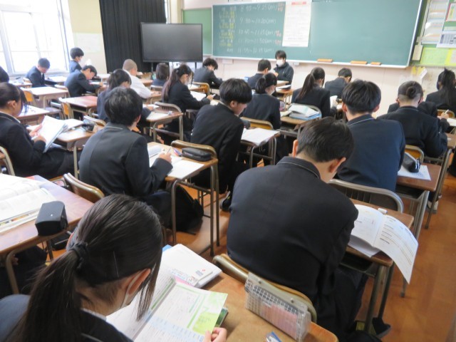 テスト前の教室のようすです。みんな集中して直前の見直しに取り組んでいました。