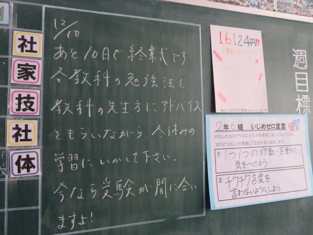 12月10日(水) 充実した学習期間に【2年黒板メッセージ】