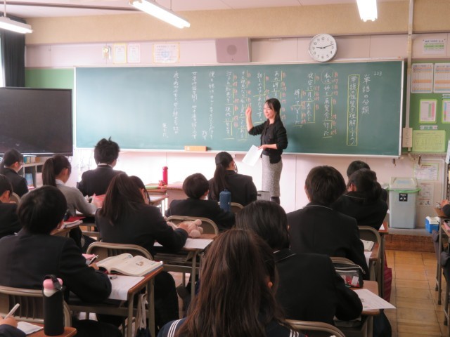 1年生の国語の授業のようすです。「単語の性質を理解しよう」というめあてで学習を進めていました。みんなで問題を解いて「自立語」と「付属語」について確認し、自信をもつことができましたね。