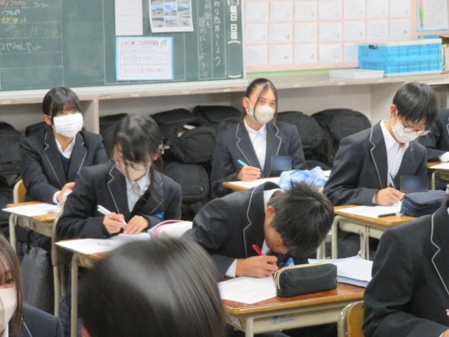 2年生の社会の授業のようすです。「文化史に関する問題に挑戦しよう」というめあてで、先生の問題プリントに挑戦していました。よく考えて思い出しながら正答にせまることができたかな。