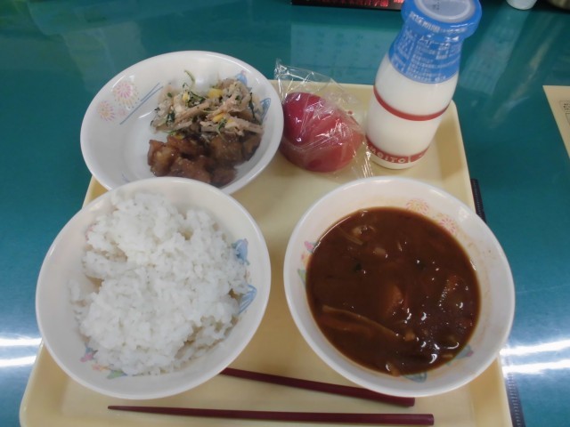 2学期の給食も残すところあと2日です。最後までおいしく食べましょうね。