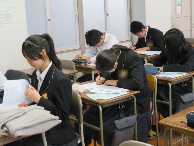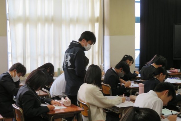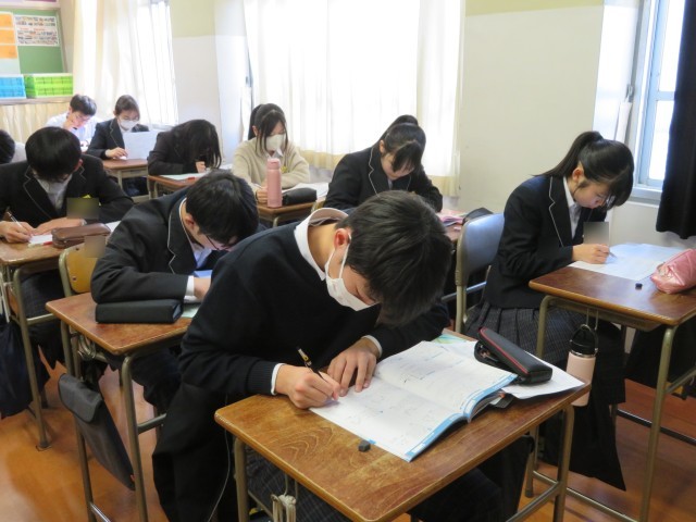 3年生の数学の授業のようすです。冬休みに数学の力を伸ばすためのプリントについて教科担任の先生から説明を受けていました。じっくりと問題に取り組んで、自信を深めていく冬休みになるように応援しています。