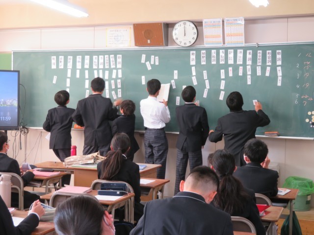 1年生の国語の授業のようすです。先生からの挑戦状で、いろんな言葉を品詞に分類することに挑戦していました。特徴をしっかりととらえて、分類することに自信をもつことができたかな。