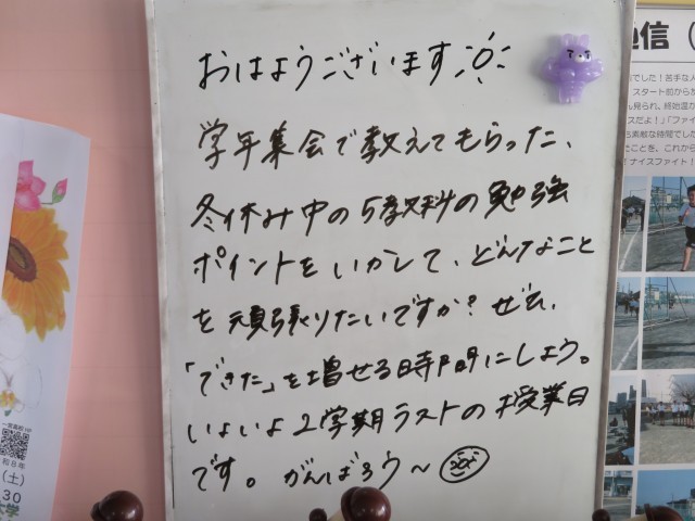 12月22日(月) 「できた」を増やせる時間に【2年黒板メッセージ】