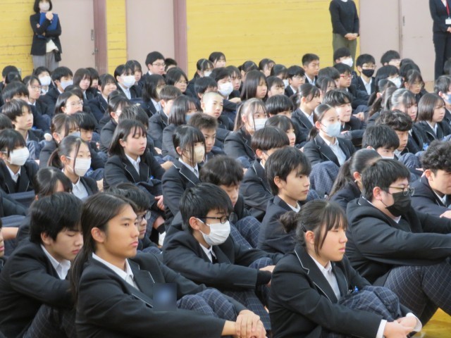 一月の始業式、また皆さんの元気な笑顔に会えることを楽しみにしています。二〇二六年が、皆さんにとって、そして中部中学校にとって素晴らしい年になることを願い、二学期終業式の式辞といたします。