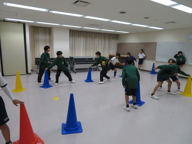 冬休み、あいにくの雨となったこの日。グラウンドでの練習は叶いませんでしたが、サッカー部の部員たちは多目的室に場所を移し、熱気あふれるトレーニングを展開していました。