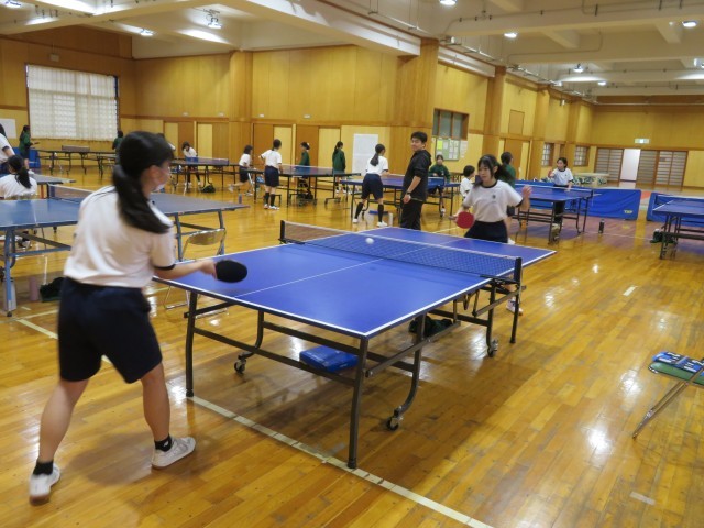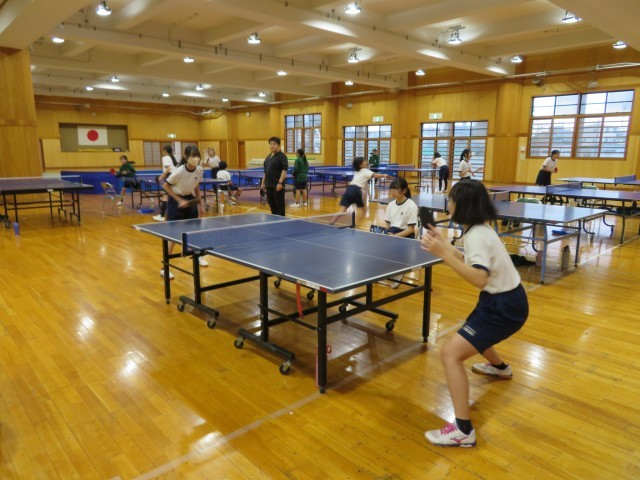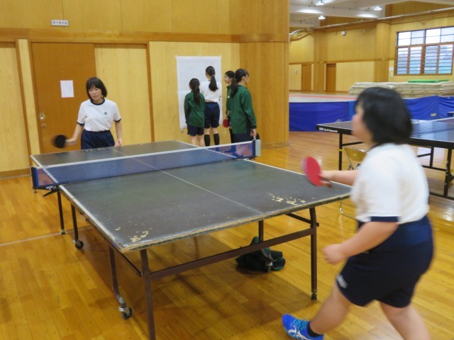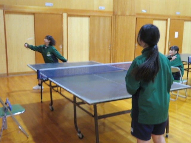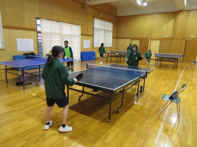 今日から冬休みが始まりましたが、武道場では卓球部女子が元気に活動しています。 初日の今日は、ペアを組んでの試合形式の練習に重点を置いて取り組みました。