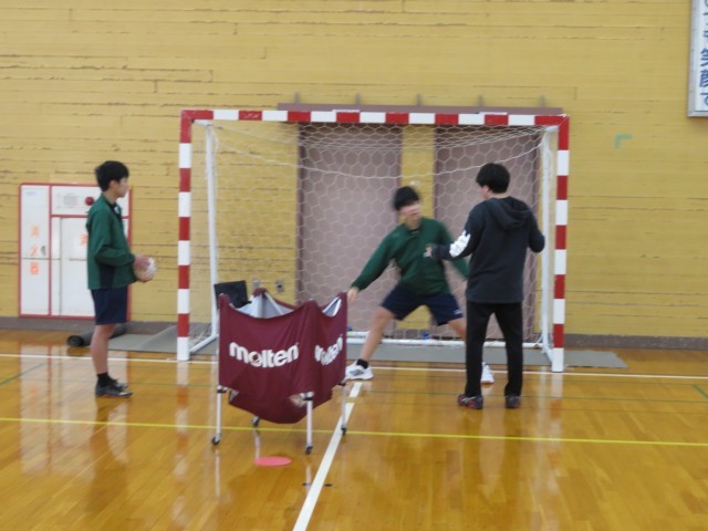 ハンドボール部の練習のようすです。ハンドボール部は今日が今年の初練習でした。顧問の先生から攻撃や守備の手ほどきを受けて、ボールに鋭く反応できるように練習を繰り返していました。