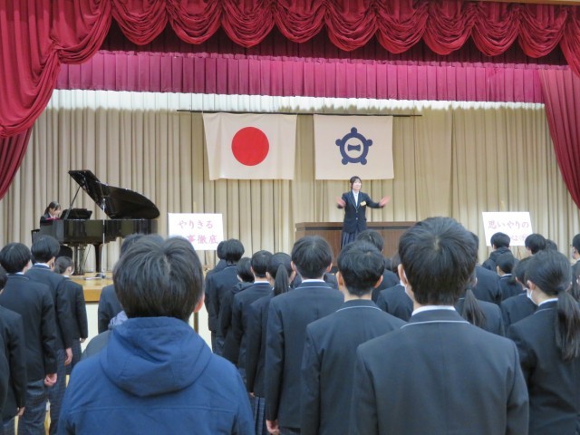 1月7日(水) 寒さに負けない歌声を【校歌練習】