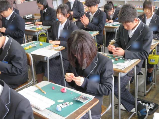 2年生の美術の授業のようすです。「和菓子づくり」に挑戦していました。おいしそうな和菓子が完成に近づいてきました。鑑賞会が楽しみですね。