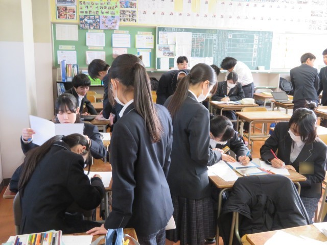 昨日から始まった愛知私学一般入試、今日は二日目になります。仲間が受験がんばっていることを心の中で思いうかべて応援しながら、各自が自習や卒業に向けた振り返り、手紙などに取り組んでいました。愛知私学一般入試は明日もあります。健康に気をつけて実力を発揮できるように応援しています。がんばれ!中中3年生(^^)/