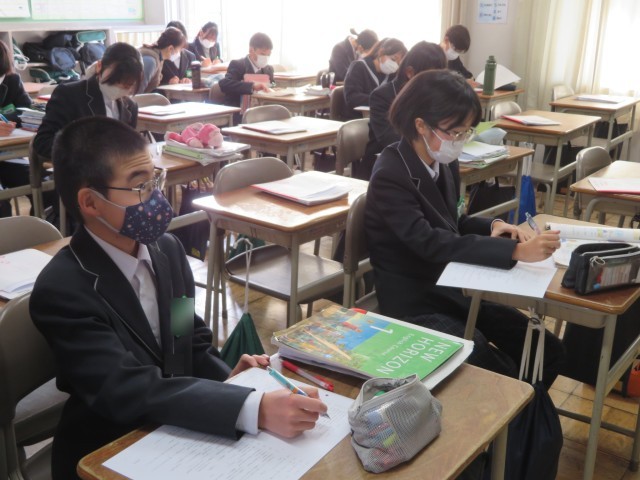 明日に控えた市内共通テスト「iテスト」に向けて、これまでの学習内容を真剣に振り返っていました。
