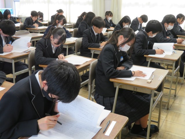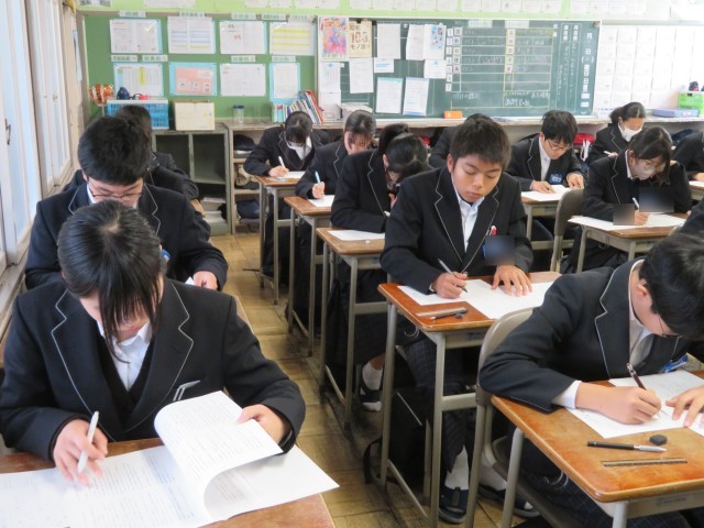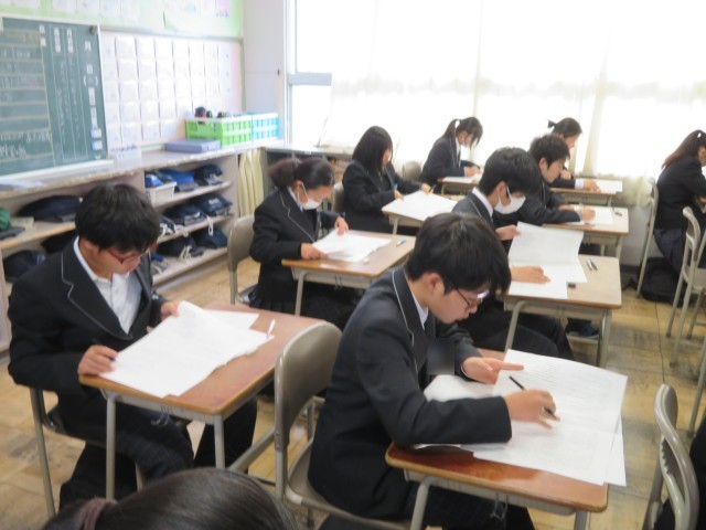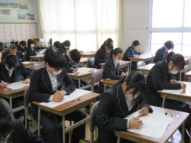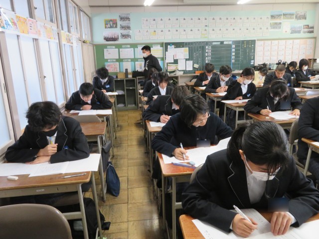 「時間いっぱい、空欄を作らない!」そんな強い意気込みが感じられる1時間目でした。結果だけでなく、今日まで頑張ってきた過程を大切にしていきましょう!写真は2年生の教室のようすです。