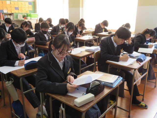 3年生の理科の授業のようすです。「他県の入試問題に挑戦しよう」というめあてで学習を進めていました。今日は山梨県の問題に挑戦です。時間配分を意識しながらじっくり考えて答えることができましたね。