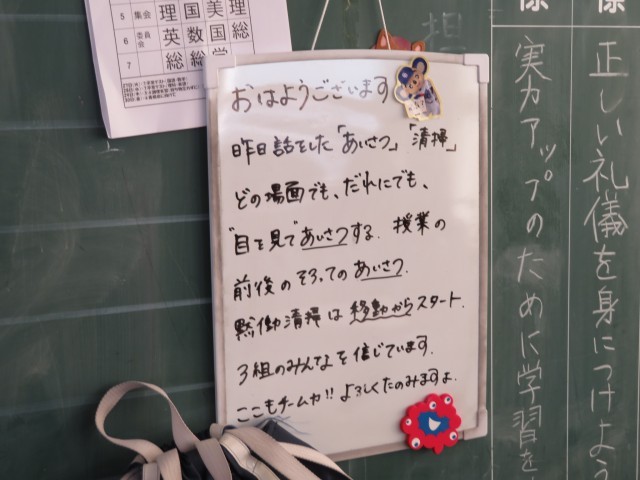 1月28日(水) いろんな場面でわがクラスのチーム力を(^^)/【2年黒板メッセージ】