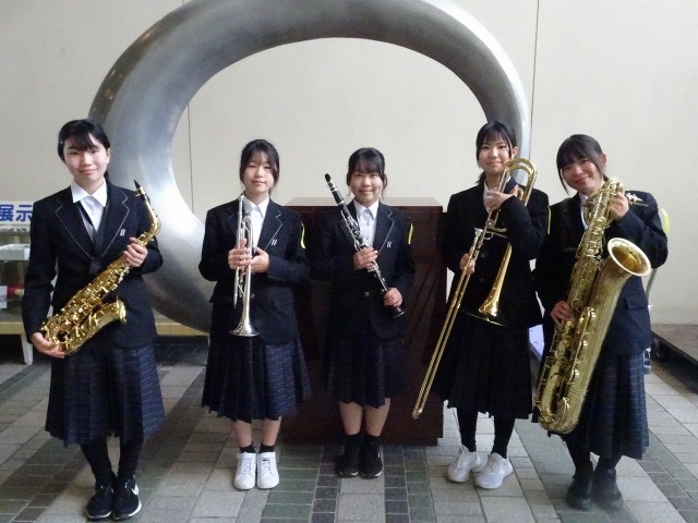 中部中学校からは、混成5重奏・フルート独奏・トランペット独奏・チューバ独奏の2年生メンバー8人が出場しました。