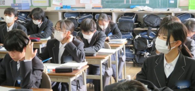 教室を覗くと、ペンを動かす音だけが響くほど、一人ひとりが自分のノートやワークに向き合っていました。 先生の解説を聞き漏らさないよう、顔を上げて真剣な表情で黒板を見つめる姿が印象的です。