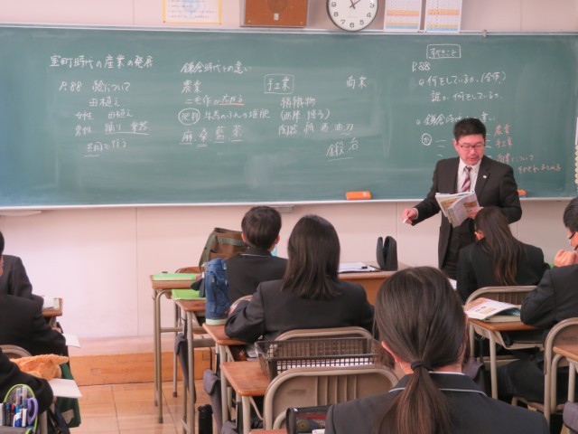 1年生の社会科の授業をのぞいてみました。 今日は室町時代の産業がテーマ。肥料の改良や二毛作の広まりなど、当時の生産力がどれほど向上したのかをみんなで考察しました。