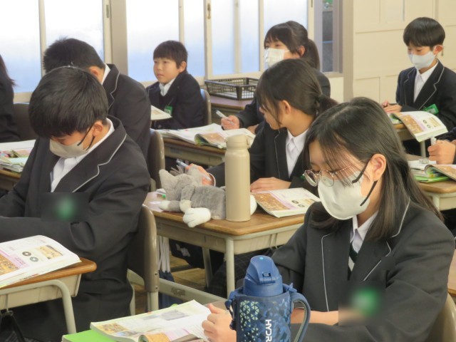 難しい用語も、資料集の絵を見ながら「あ、これのことか!」と納得の表情。友達と協力しながら、着実に学びを深めている1年生でした!