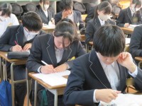 3年生の数学の授業では、愛知県公立高校入試の過去問に取り組んでいます。 教室内は、鉛筆が紙を走る音だけが響くほどの高い集中力に包まれていました。