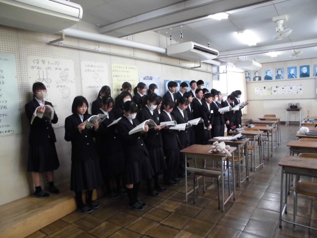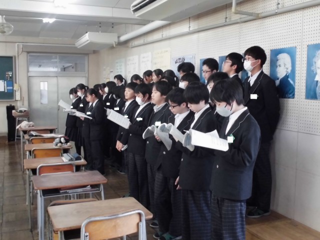 本日の音楽の授業では、「地球星歌」の合唱を行いました。