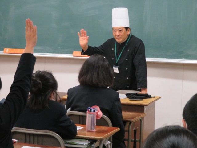 ◇今日は、中部中学校に貴重なお話をしに来てくれて、ありがとうございました。 私がすごいと思ったのは、季節によって組み合わせる色を変えたり、味のバランスをしっかり考えたりしているところです。甘すぎないように酸味を入れたり、組み合わせる色を見たり、聞いていて考えている所がすごいと思いました。 そして、えらい人ほどぼうしが高いということに、とてもびっくりしました。大変なスイーツでもデコレーションがのっていることもびっくりしました。今日はありがとうございました。