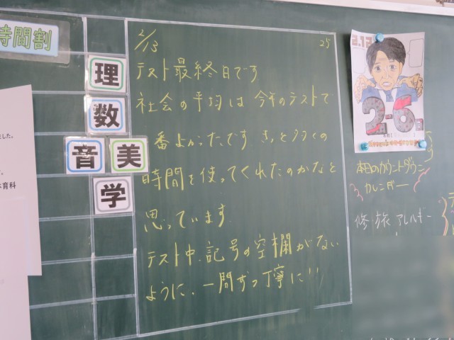 2月13日(金) 一問ずつ丁寧に【2年黒板メッセージ】
