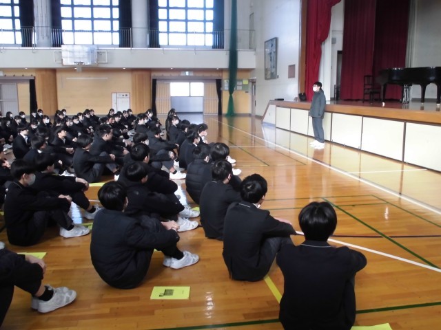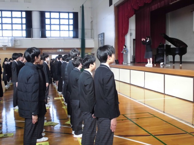 1限にアリーナで卒業式の歌練習を行いました。初めにリーダーから歌練習への思いを話してもらい士気が高まりました。