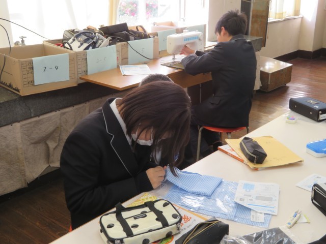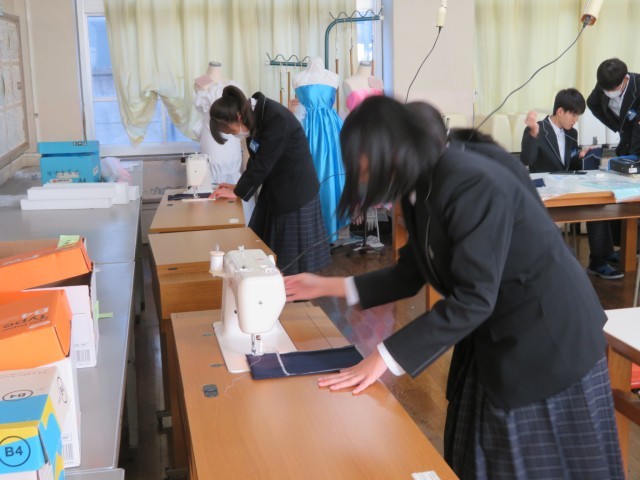 「ここはこうだよね?」「きれいに縫えた!」と、あちこちで教え合いの輪が広がる実習室。慣れない作業に苦戦する場面もありますが、平面の布が立体的なバッグへと姿を変えていく様子に、生徒たちの表情も自然と輝きます。最後までこだわり抜いた、納得の作品ができあがるのを楽しみにしています!