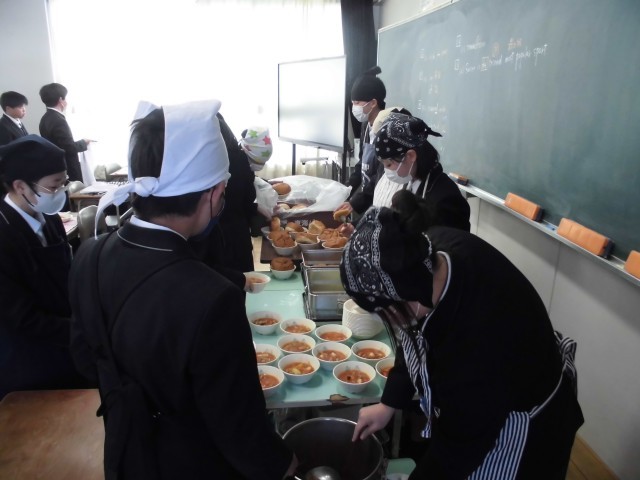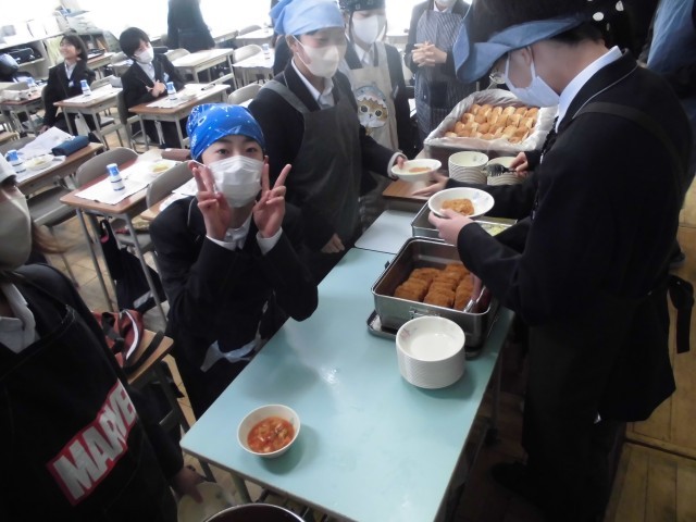2年生の配膳の様子です。協力しながら楽しそうに配膳していました。