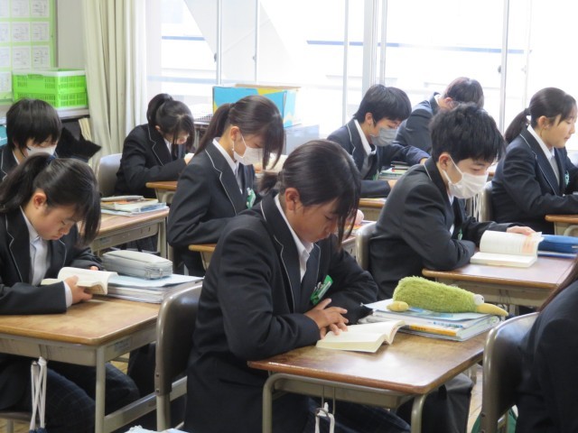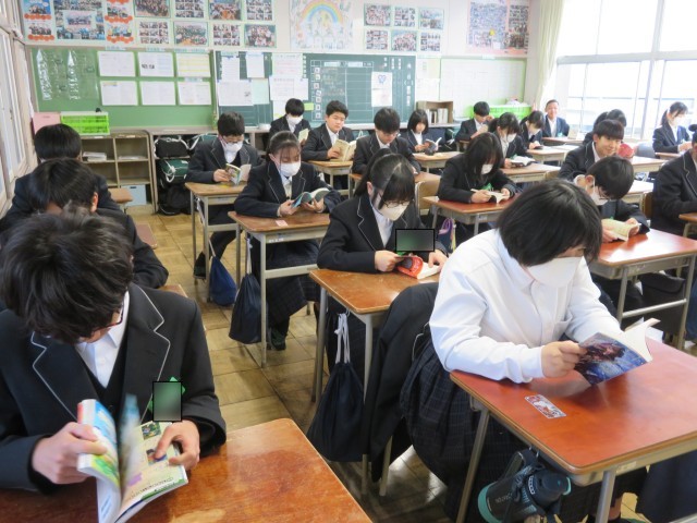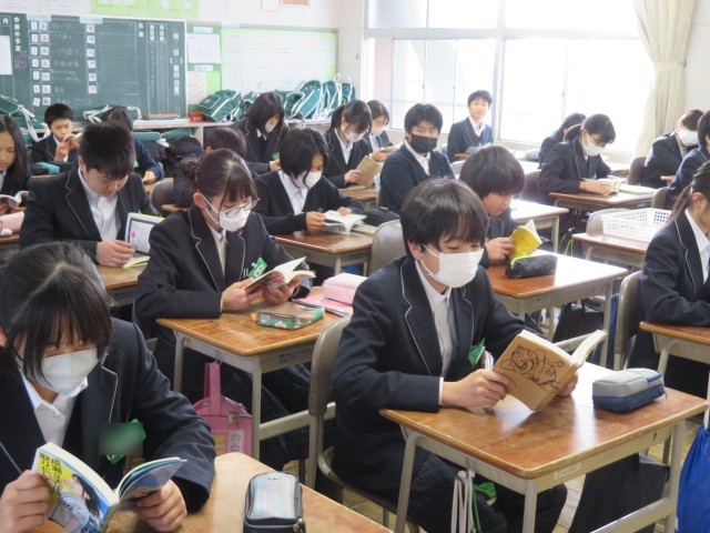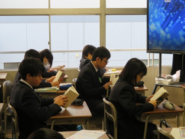 生徒たちは今、読書に夢中です。ページをめくる音だけが聞こえる教室で、一人ひとりが自分の選んだ本の世界に深く入り込んでいます。