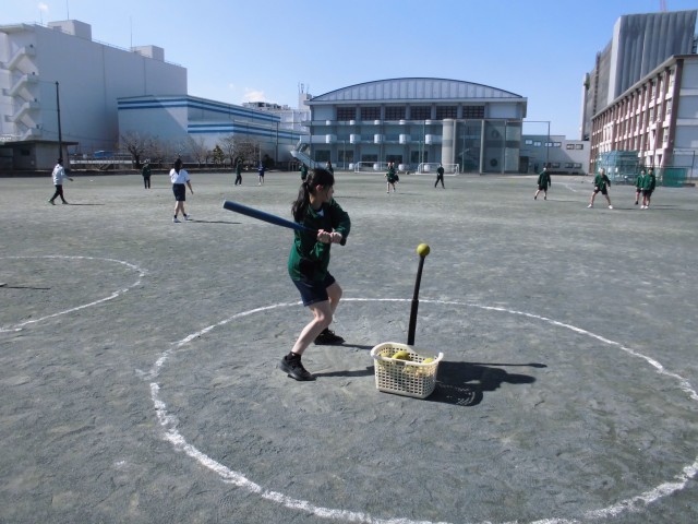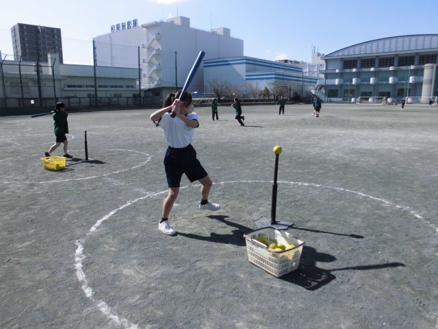 ティー台を使ってバッティング練習を行いました。遠くへ飛ばすためにはどうしたらよいのかをテーマにバッティング練習に励みました。
