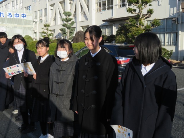 あいさつ運動3日目!今日は寒い朝になりましたが、元気印のリーダーたちが早くから集まってみんなの登校を迎える準備をし、明るくすてきなあいさつを広げようとがんばってくれていました。あったかい思いやりの心に感謝感謝です。