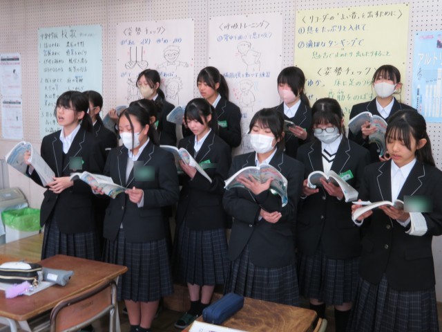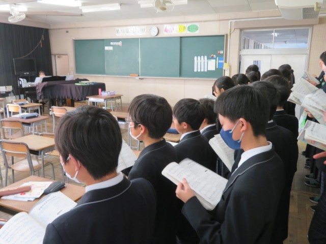 現在、1年生の音楽の授業では、お世話になった3年生へ感謝を届ける「予餞会(卒業生を送る会)」に向けた合唱練習が本格的に始まっています。