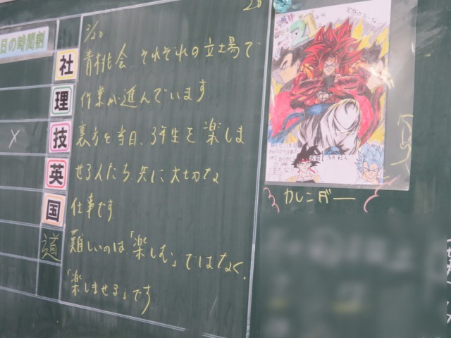 2月21日(土) 「楽しむこと」と「楽しませること」【2年黒板メッセージ】