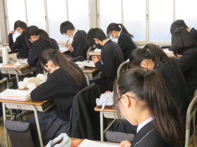 2年生の国語の授業のようすです。「文法の総まとめをしよう」というめあてで、問題集に挑戦し、教科担任の先生の解説を聞いて理解を深めました。