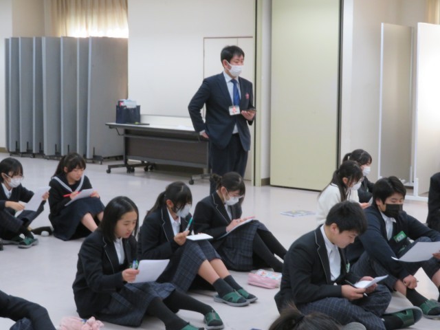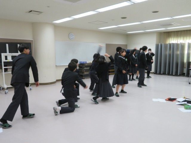 1年生の青桃会(卒業生を送る会)実行委員が6時間目に多目的室に集まって練習に取り組んでいました。先輩に楽しんでもらうために、感謝の気持ちを伝えるために、どんなふうに演出をすればいいかな。みんなでアイディアを出し合いながらがんばっていました。2年生への階段を一歩ずつ進めてくれています。