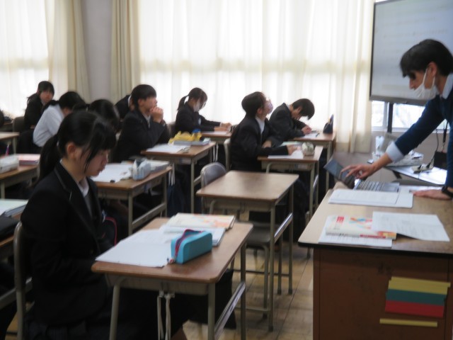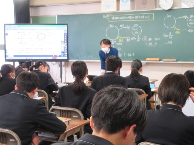 2年生の数学の授業のようすです。「標本調査の結果から母集団の性質を推定しよう」というめあてで学習していました。