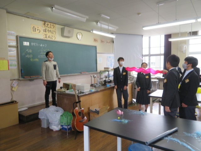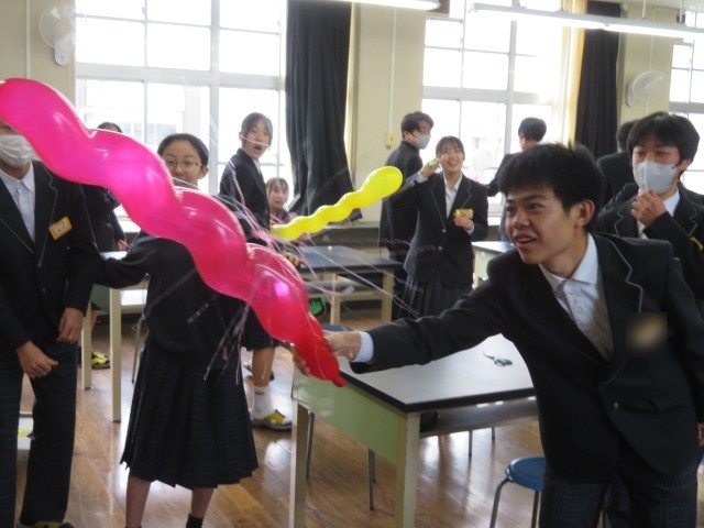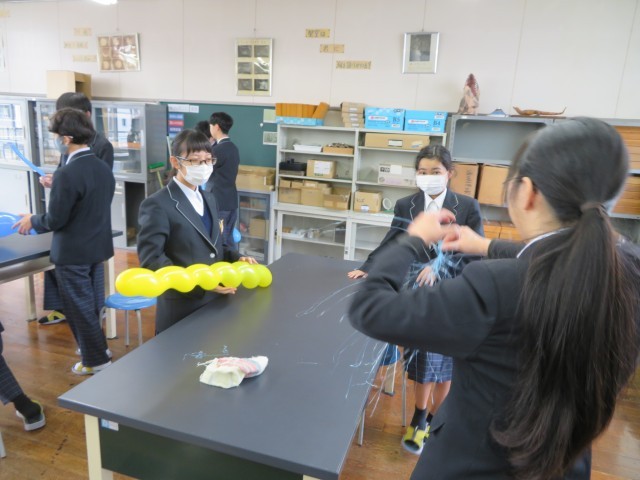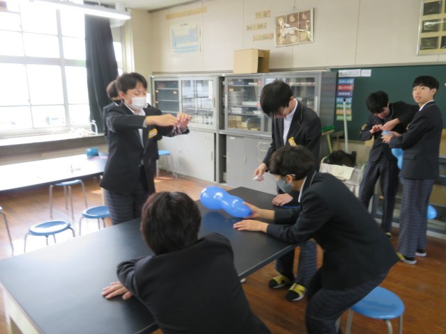 3年生の理科の授業のようすです。「静電気で遊ぼう」というユニークなめあてで学習を進めていました。風船とタフロープ、シャボン玉を使って、静電気を発生させるとどうなるか実験しました。予想した通りの結果を得られたかな?楽しく学びを振り返ることができましたね。