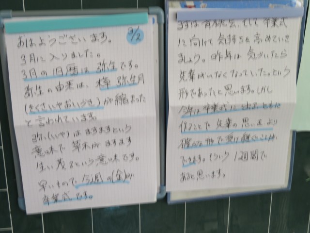 3月2日(月) バトンを受け取る週ですね【2年黒板メッセージ】