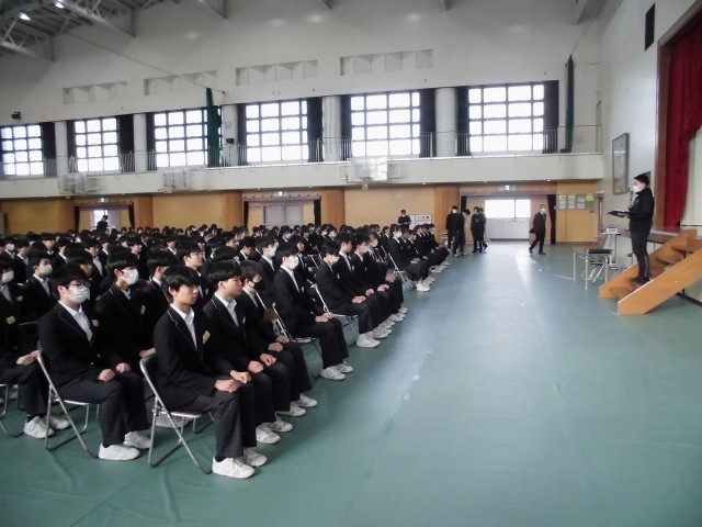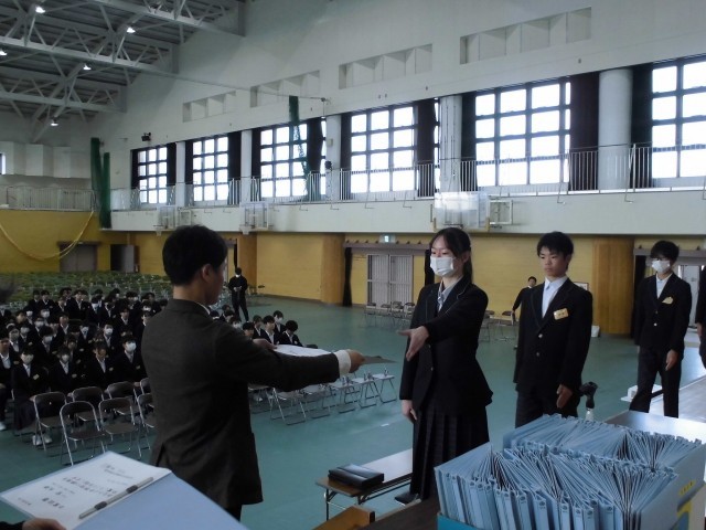 今日の1,2限に卒業式の練習を行いました。どの生徒も真剣に取り組むことができました。卒業証書を受け取る練習では、まだまだ返事の声が小さい生徒もいます。本番では堂々と、精一杯の返事ができるとよいですね。