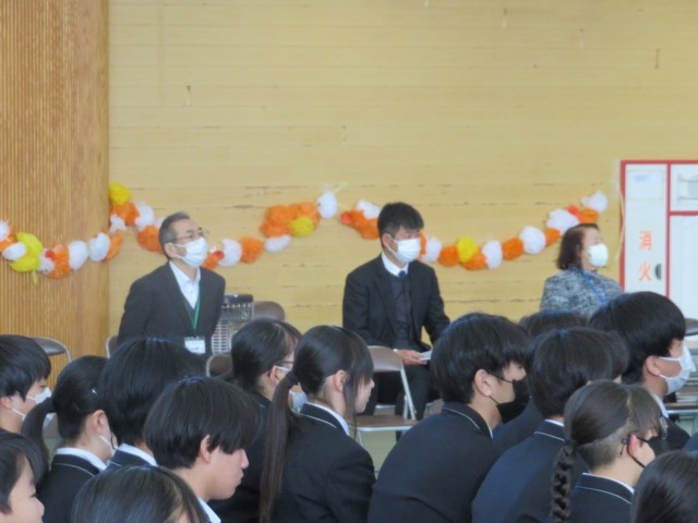 皆さんが明日、立派な姿で卒業証書を手にすることを、誰よりも楽しみにしている人がいます。その期待と愛情を胸に、明日の朝、もう一度この校門をくぐってきてください。