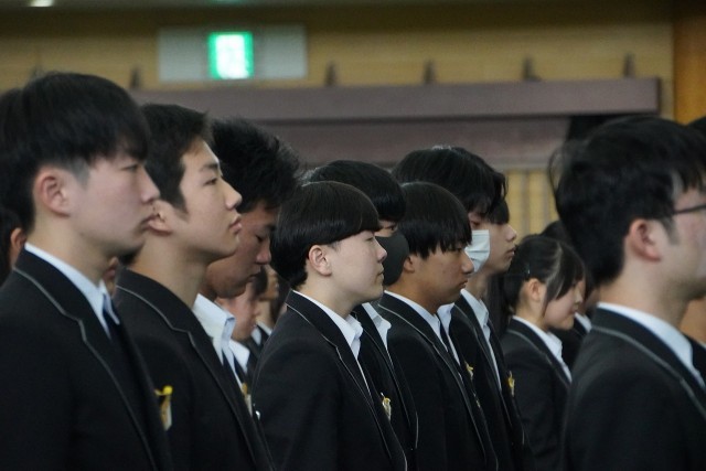 本日この会場には、皆さんの背中を追い続けてきた二年生が参列しています。皆さんが卒業してしまうことに大きな寂しさを感じますが、皆さんの立派な振る舞いは、二年生がいつもすぐ近くで、しっかりと見ていてくれました。中部中の良き伝統は、二年生へ、そして一年生へと、力強く、確かに受け継がれていくことでしょう。